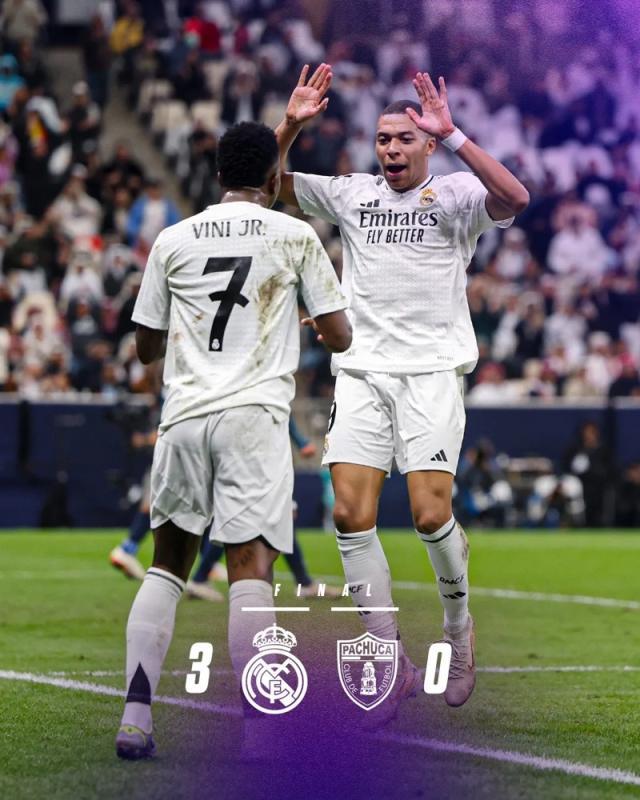 最终,凭借姆巴佩、罗德里戈和维尼修斯的三箭齐发,皇马3-0击败帕丘卡,夺得2024洲际杯冠军!