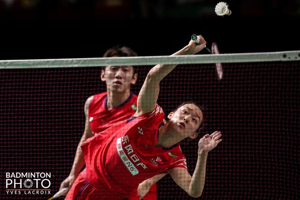 女双李怡婧/鲍骊婧继续取胜,她们以21比10、21比16战胜韩国的金裕贞/李幽琳。混双两对国羽组合1胜1负,三号种子程星/张驰以21比11、21比17战胜泰国组合普瓦纳特/本雅帕;五号种子高家炫/吴梦莹以23比21、15比21、18比21不敌中国台北的吴轩毅/杨筑云。